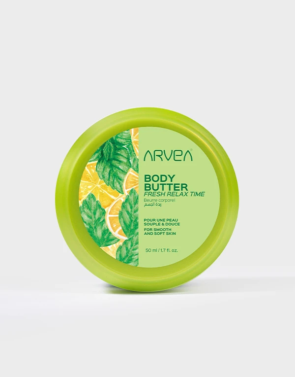 Ce beurre corporel "Body Butter" offre une texture super onctueuse et un parfum frais, idéal pour des moments de relaxation. Il s'étale facilement sur la peau, laissant un voile de douceur réconfortant et non collant. Sa formule ultra-riche à base de beurre de karité et renforcée par l’huile d’argan, l’Aloe vera, l’extrait de romarin et de propolis nourrit intensément et hydrate durablement pour restaurer la barrière cutanée et assouplir la peau.